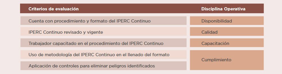 El Subcomité de Administración de Riesgos trabaja la medición de indicadores de cumplimiento del uso del IPERC Continuo, estos se basan en los criterios de Disciplina Operativa.