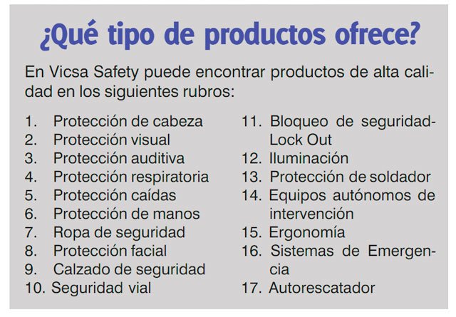Dado que la elección de un equipo de protección individual debe cumplir los criterios de adaptación a los riesgos que se corren, Vicsa Safety ofrece la asesoría de sus especialistas quienes ayudan a identificar claramente las necesidades de los usuarios finales y el nivel de protección indispensable de su actividad. De esta manera, contribuye a generar una cultura de protección al trabajador.