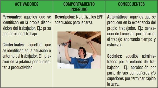 Observe primero cuáles son aquellas variables que se presentan antes de la emisión de la conducta insegura (a estas se les denomina activadores), luego observe aquellas que se presentan inmediatamente después (a estas se les denomina consecuentes).