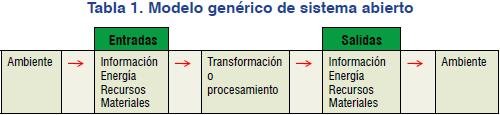 - Sistema abierto: aquel que se concibe en interrelación directa y continua con el medio que le rodea, del cual importa energía, la transforma y exporta en forma de producto, bien o servicio.