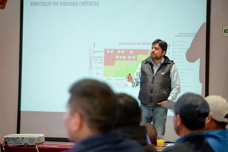 Por su parte, el superintendente de Exploraciones, Juan Calizaya, explicó de manera sucinta el trabajo de gestión en seguridad y medio ambiente de las contratistas Kori Drilling, Explodrilling y Geotec, así como la implementación de las mejoras en sus procesos y los resultados de seguridad.