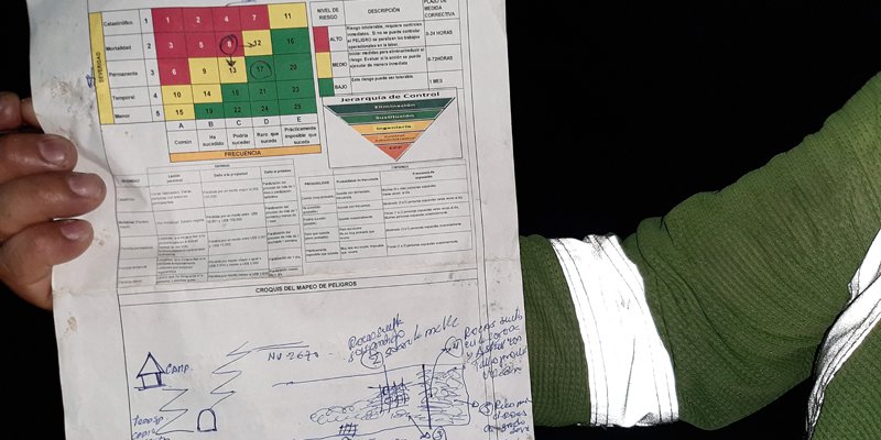 Mapeo de peligros realizados por los propios trabajadores en sus frentes de trabajo.