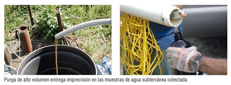 La desventaja de la purga de alto volumen es requiere un filtrado de muestras, lo que implica mayores costos y tiempo de trabajo en campo y laboratorio. Además, la filtración afecta la química de la muestra, aseguró el Ing. Acosta. En síntesis, la purga tradicional de pozos causa significativas desviaciones y errores en el muestreo de aguas subterráneas.