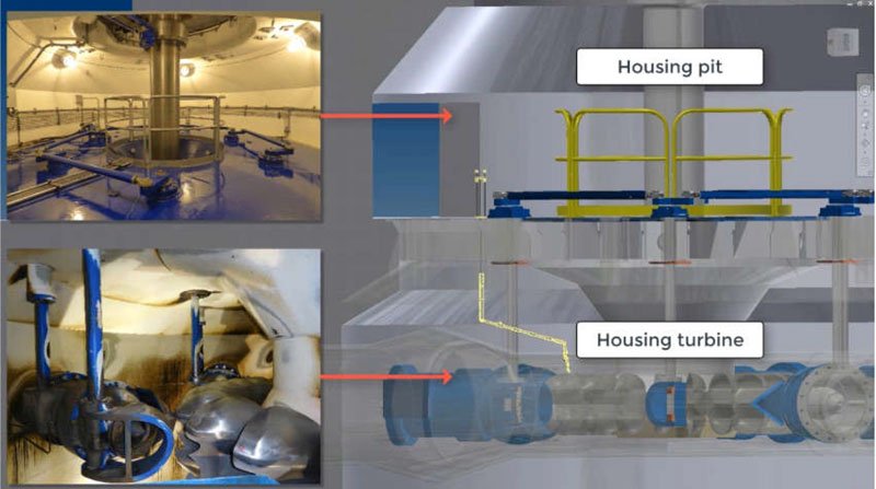 El proceso de inspección consiste en introducir toda la estructura robótica a través de un agujero de 48 mm de diámetro aproximadamente, que comunica el primer nivel de la casa de máquina (Housing pit) con la sala de turbina (Housing turbine) donde se encuentra el rodete Pelton.