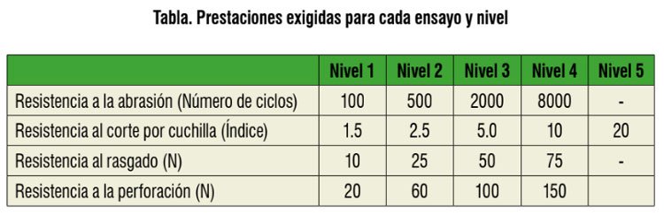 La idoneidad de un guante para una tarea específica requerirá su prueba in situ.